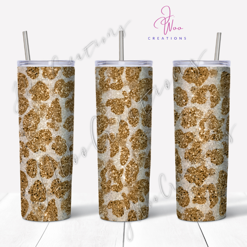 20 oz. Stainless Steel Tumbler - Glitter Cheetah (Various Colors)