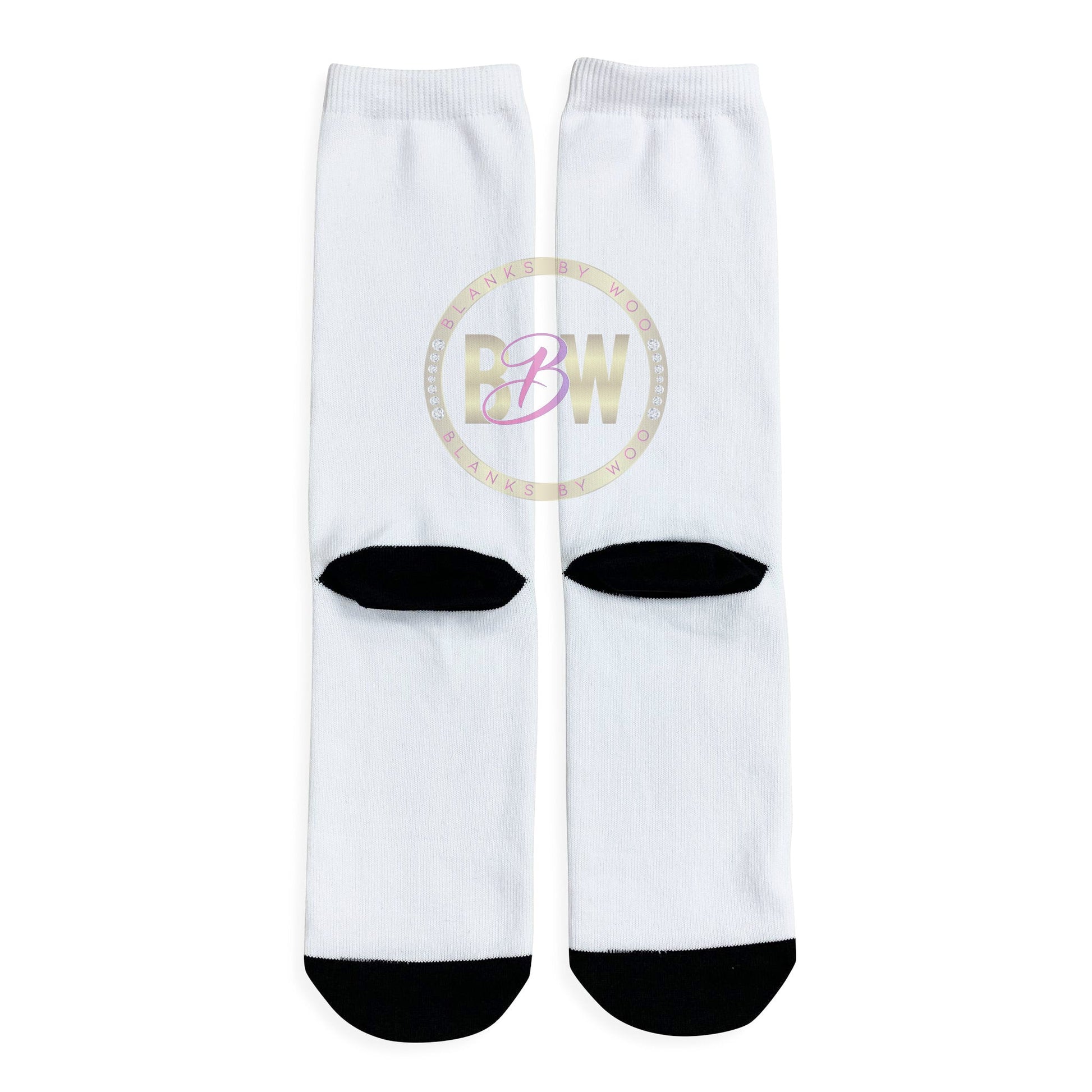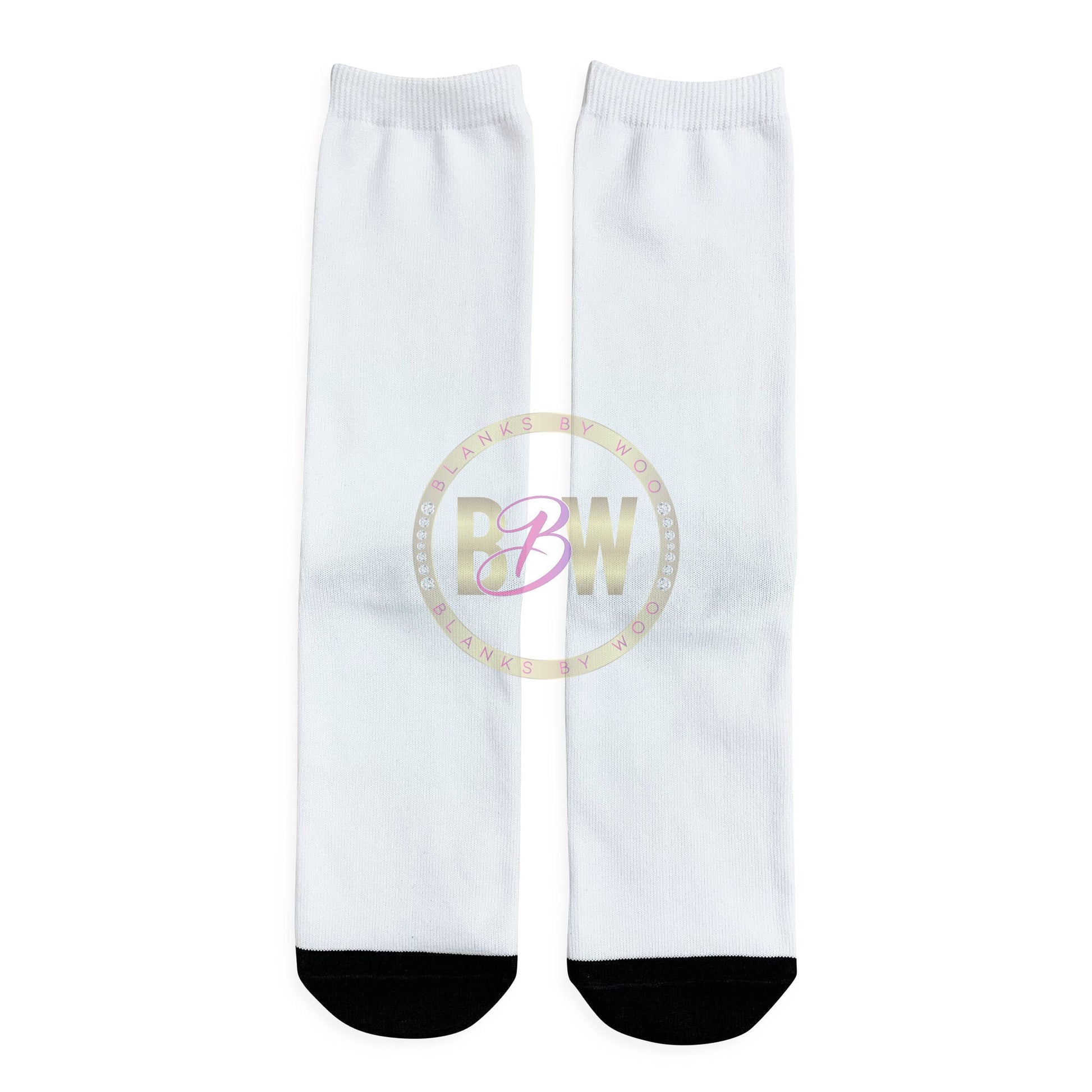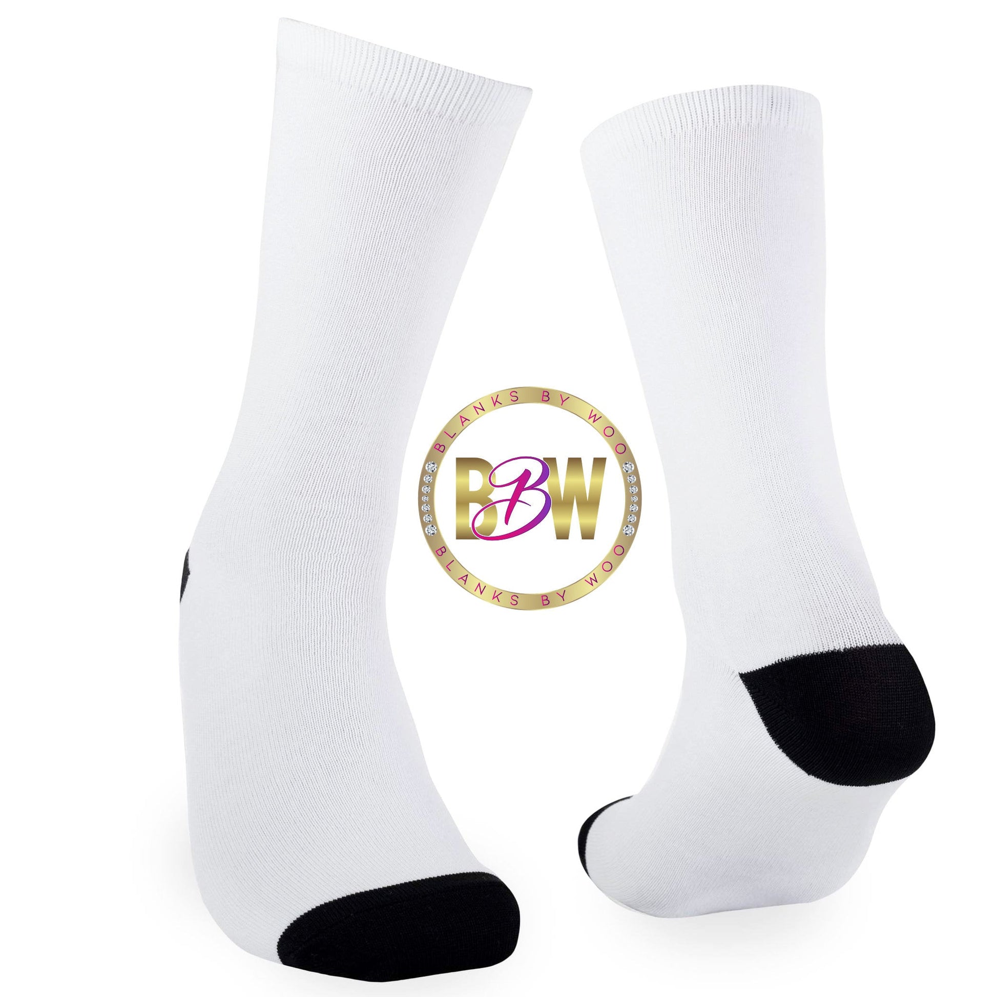 These dress socks are amazingly comfortable and produce vibrant colors for sublimation. This sock is polyester outside and a cotton interior for both superb comfort and great printing results. They are 70% Polyester, 25% cotton, 5% elastane/spandex.