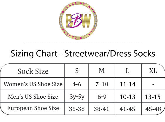These are fully printable white socks that are sublimation ready. This item is ideal for all over sublimation printing and is the recommended style for street and/or casual wear! They are 95% polyester/5% elastane/spandex .