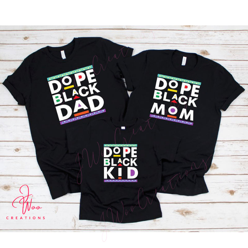Introducing the Dope Family Matching Tees, the ultimate family fashion statement for families who love to match! This shirts come in different designs, each with a unique phrase that celebrates family and individuality.