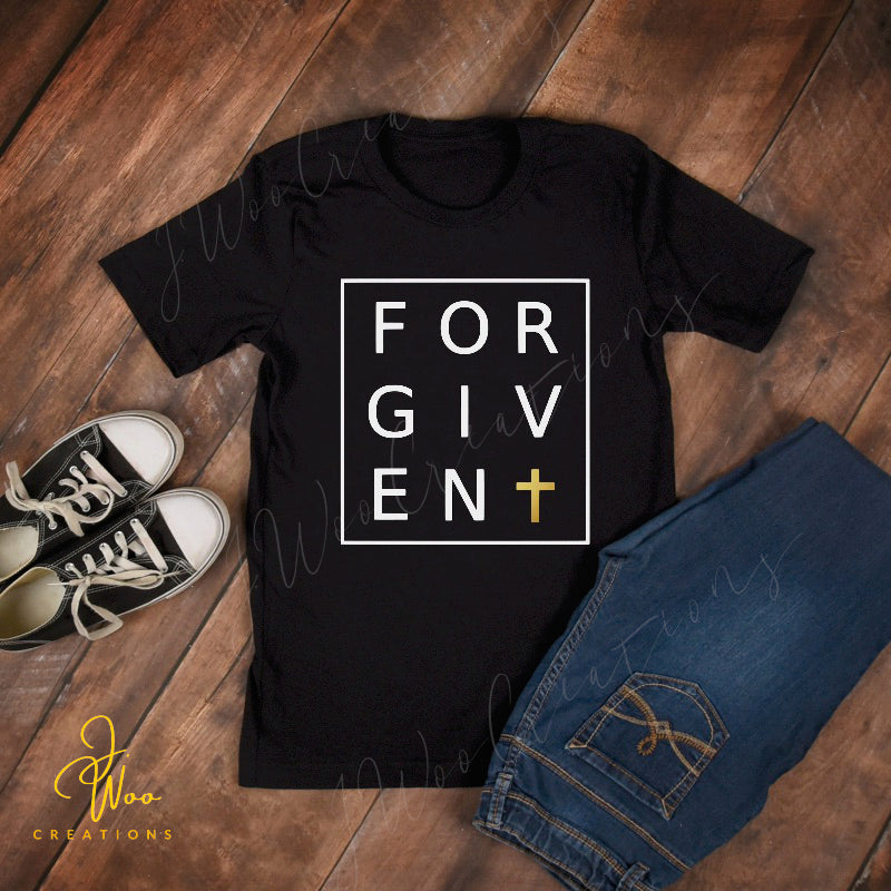 Whether you're heading to church, running errands, or simply looking for a comfortable and stylish tee to wear around the house, the Forgiven with Cross Tee is the perfect choice.