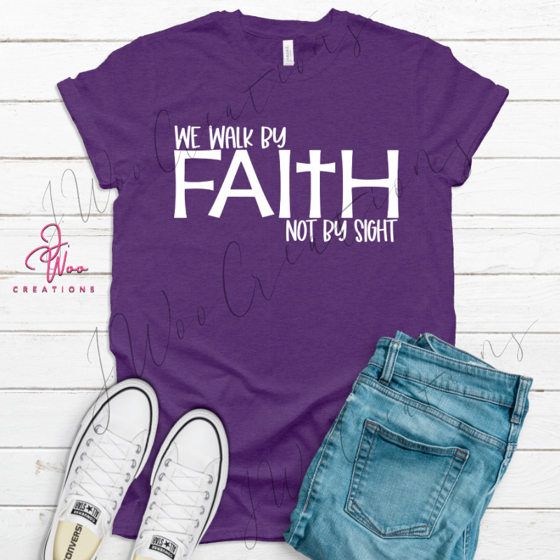Whether you're heading to church or just out for a casual day with friends, the Walk by Faith Tee is sure to turn heads. So why wait? Order your Walk by Faith Tee today and share your faith with the world!